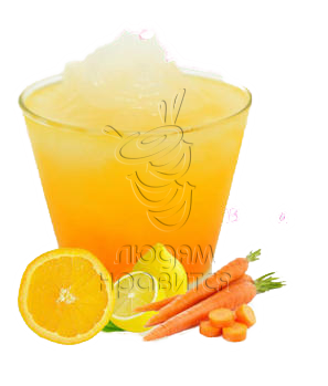 фруктоза, растительные волокна, обезвоженной сок апельсина, моркови и лимонна, регулятор кислотности: Е330; стабилизаторы: Е415, Е412; ароматизаторы, эмульгатор: E472b, E477; красители:Е160а; бузины экстракт, соевая мука.