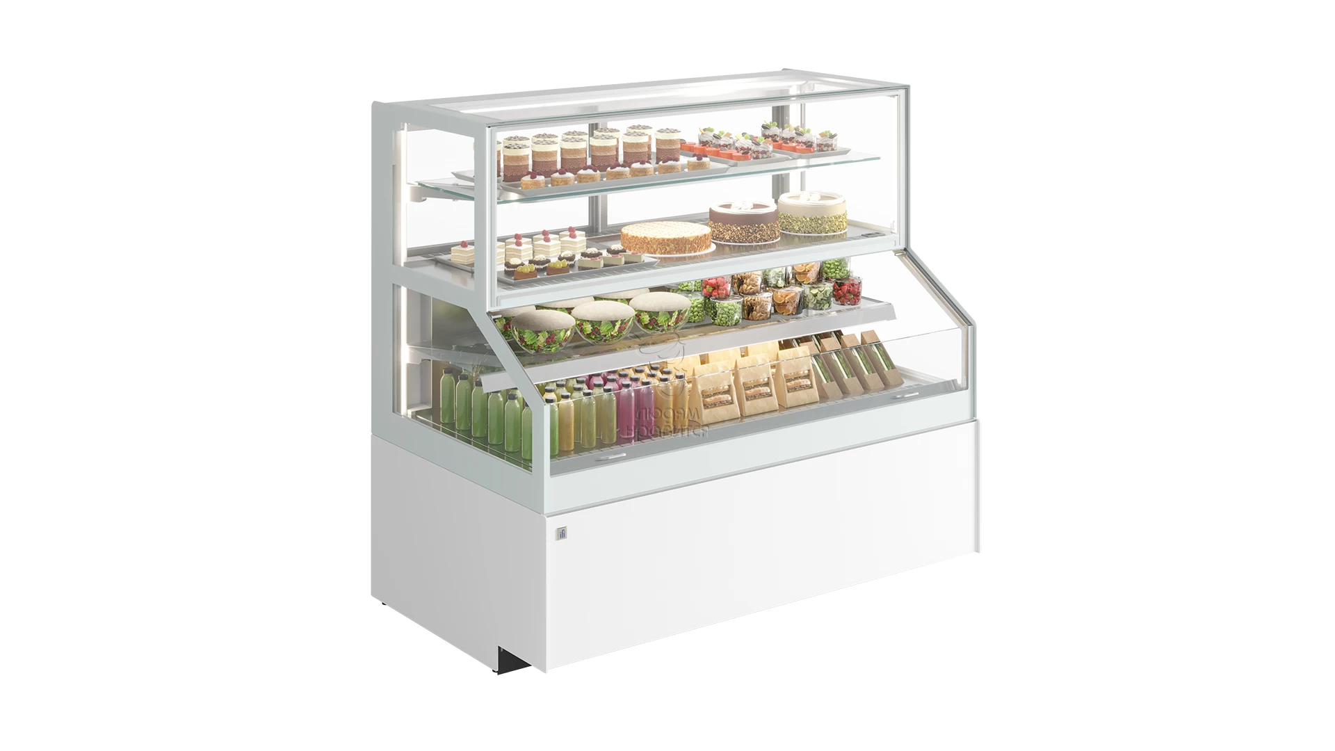 Кондитерская витрина Lilium Combi (Комбинированная) отличается возможностью объединения двух витрин в одной: Lilium Pastry (Кондитерской витрины) и Grab&Go (Витрины «на вынос»).