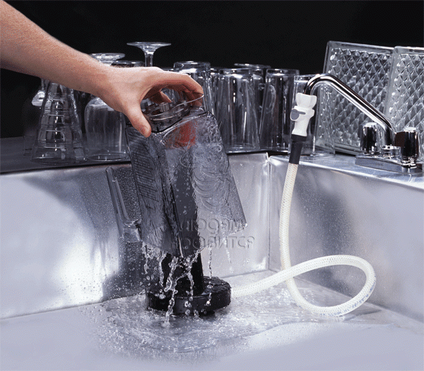 VITAMIX® предлагает уникальное решение – устройство для мытья контейнеров блендеров Rinse-o-matic®. Оно предназначено для мытья контейнеров любых производителей объемом 2,0 л и меньше и идеально для использования в барах, ресторанах, буфетах и кофейнях. Rinse-o-matic® дает возможность в считанные секунды чисто вымыть контейнер, в том числе и под ножами, где в ручную это делать небезопасно, сэкономив при этом время бартендера, удовлетворив высокие гигиенические и эстетические стандарты вашего заведения!